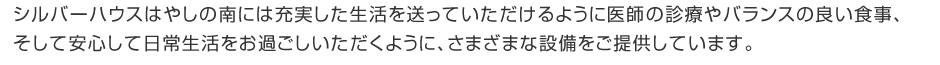 協力医療機関の定期健診・往診により健康管理に留意いたします。
